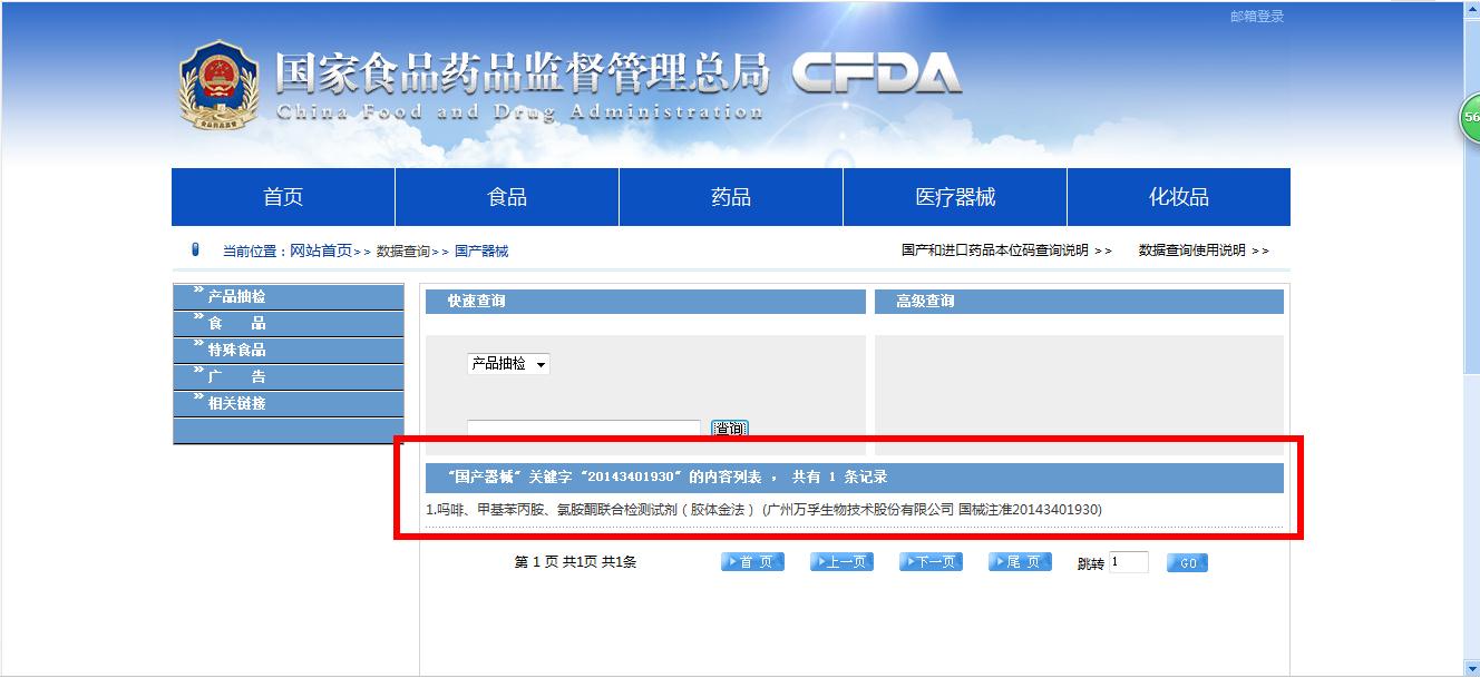 查询方法:进入国家食品药品监督管理总局网站 >医疗器械 > 国产器械>产品抽检,输入批号,点击查询即可。